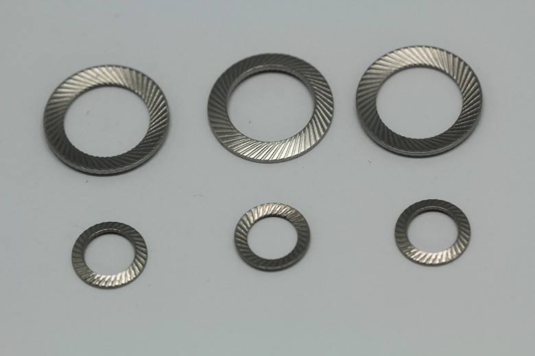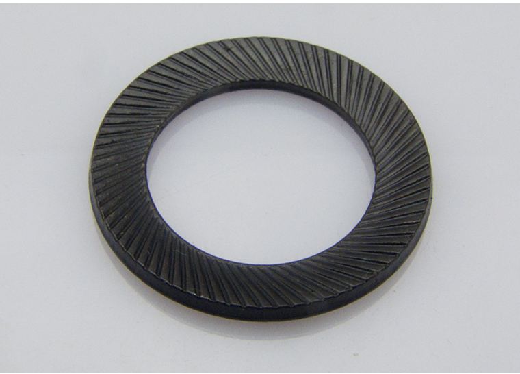 Lock washers create tension by “locking” the bolt or screw into the workpiece’s threaded hole. Unlike flat washers, they have serrations on the washer body to prevent rotation and provide a more secure connection than flat washers. These washers are frequently used in high-vibration environments to prevent the loosening of the fastener assembly.